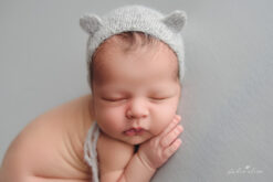 A lovely Bonnet for boy made out of a soft knit fabric.