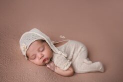 A lovely stripped footed romper + Hat for girl made out of a soft knit fabric.