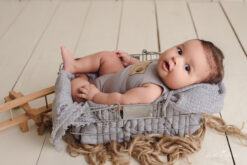 A lovely stripped romper for boy made out of a soft knit fabric.